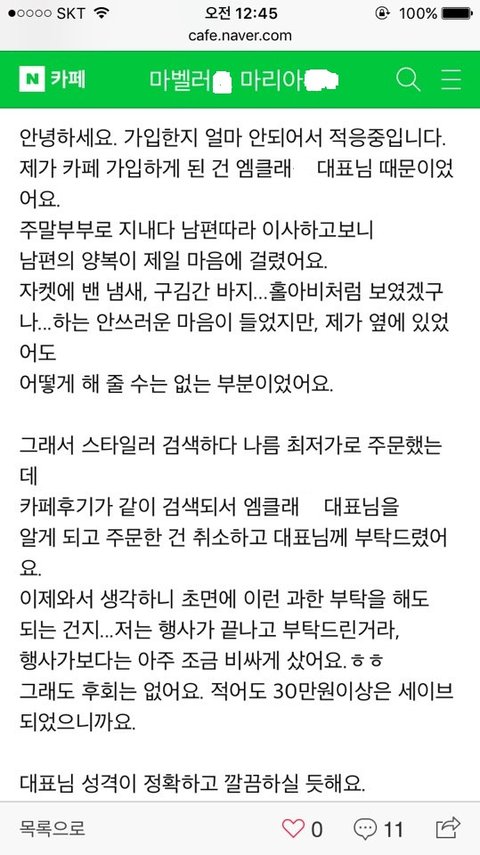 엠클래*: 통화는 하지 않겠습니다. 금액과 계좌 남겨주시기 바라구요.
