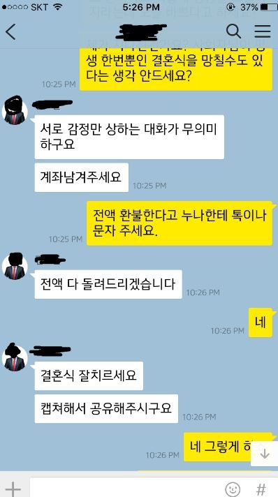환불 문제는 누나분과 결혼식 끝나고 하기로 했습니다.
