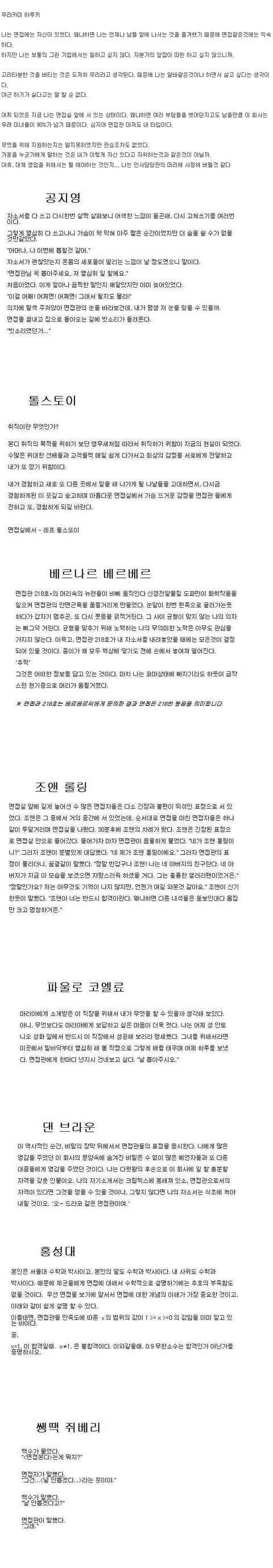 유명작가들이 면접을 본걸 기록한다면.jpg