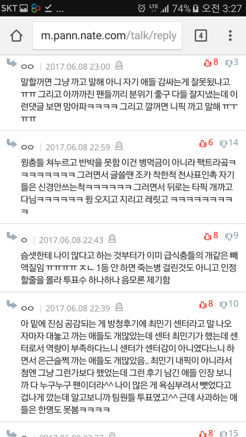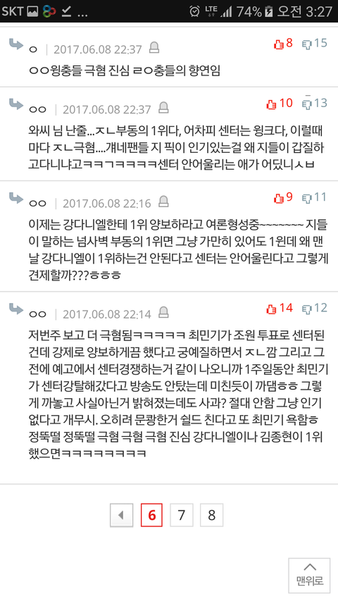 늬들 센터 지훈이야 하면서 투표는 딴애하면