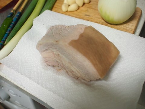 끓는물에 삼겹살을 먼저 한번 담궈줘서 불순물이랑 그런걸 좀 빼고