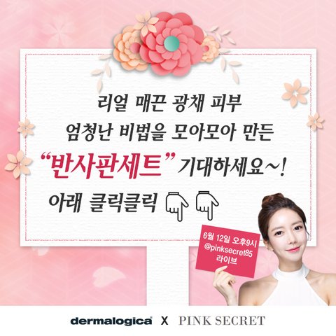 오는 12일에 인스타에서 라이브방송한다는 핑크시크릿과 더말로지카!!