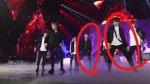 리허설 직캠에선 둘 다 멈춰있는데 본방에선 센터 용국이랑 주학년이랑 같이 움직임.