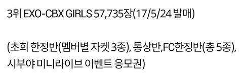 첸백시 올해 상반기 앨범판매량 한국가수 오리콘차트