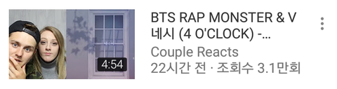 빌볻이후에 케이팝 처음 접해서 낫투랑 셉미로 첫 영상 찍고 입덕 했나봐ㅋㅋㅋ 비티에스 재밌는 순간 이런 영상도 리액션하고 되게 귀여운 커플임ㅋㅋ