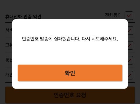 Cj 회원가입하래서 하고있는데 인증번호 요청하니깐 이거 뜸... 저번에도 그랬는데 너네도 이랬니 ㅠㅠㅠㅠㅠㅠㅠ 큡즈 두 명 다 뽑아야대는데...