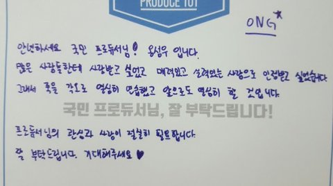 프듀 A반의 실력자이며, 노래, 춤, 외모, 개그 다양한 방면에서 뛰어난 밸런스캐릭터에다가노력파이기까지 한 옹성우! ^0^아래 손편지에 보다시피 정말 '사랑받고 싶었고, 인정받고 싶었습니다'