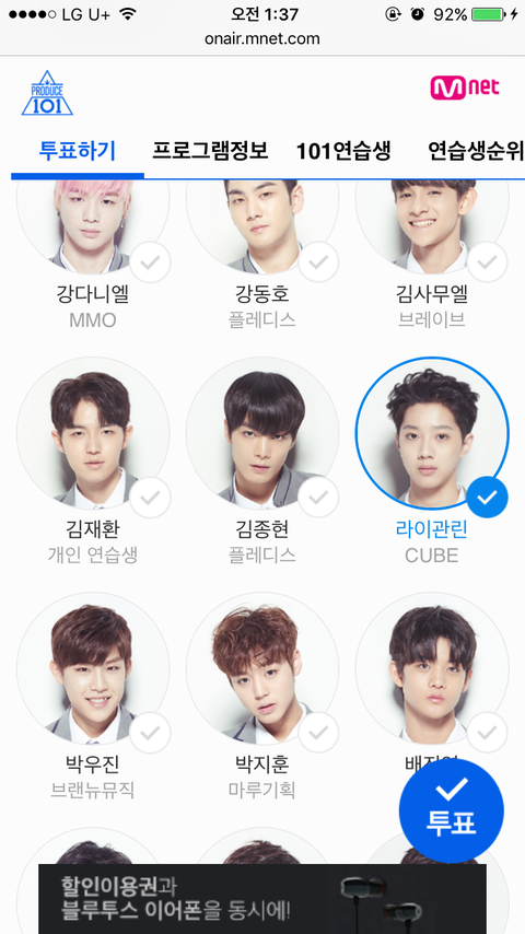 저도 방금 투표 2개 하고왔고 이제 제발 차애 뽑지 말고 라이관린만 꾸준히 투표해주세요 순위 20위인거 보셨죠? 장난아니고 방출될뻔했어요