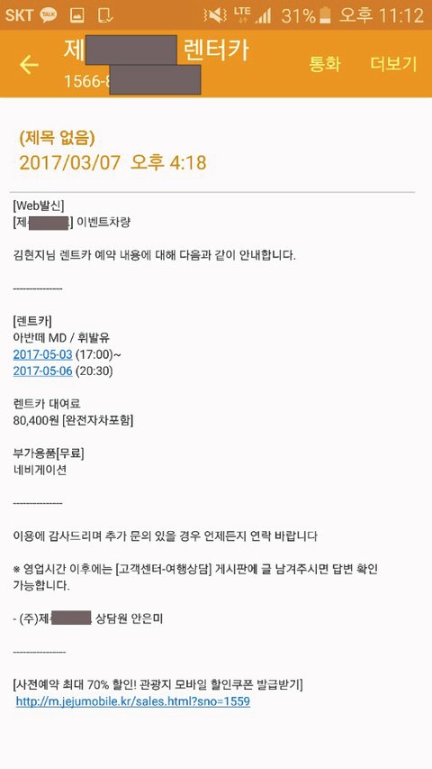 3/7일 제주에서 렌트카를 이용하기 위해 홈페이지에서 예약을 시도함