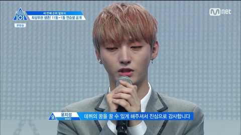 항상 간절하고 노력해왔던 윤지성 연습생에게 다시한번 데뷔의 꿈을 꿀수있게 도와준 모든 국민 프로듀서님께 고맙다고 하고싶어