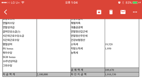 거기다가 한달에 10만원 교통비+통신비4만원, 식대 4만원(식권받는 거에 더해서 현금지원)받습니다
