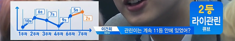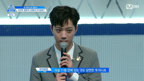 라이관린 때만 다른 연습생들이 부러워하는 모습까지 집어 넣으면서 계속 11위권이었음을 강조함