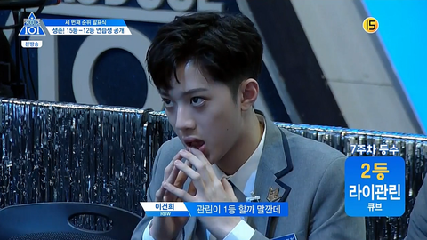 라이관린은 상위권일 것이라고 타 연습생들이 추측하는 모습이 2차 순발식 때 함께 최상위권이었던 김종현 연습생, 박지훈 연습생에 비해 압도적으로 많이 나왔음