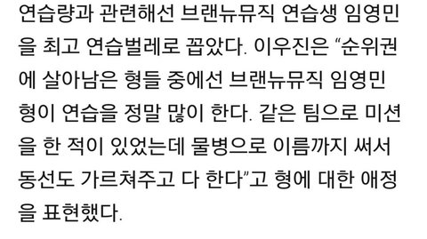 지난 삼차평가 열어줘에서 랩포지션을 맡은 임영민은 타팬들이 계속 눈이 갈정도로 무대를 잘했다고함!! 인터뷰 할때는 웃고 있다가 무대만하면 바로 표정이 돌변하는 임영민 .... 하.. 임영민 1분줄게 당장 데뷔해