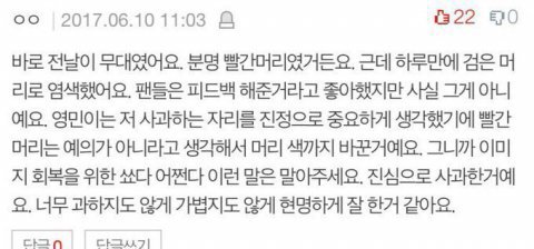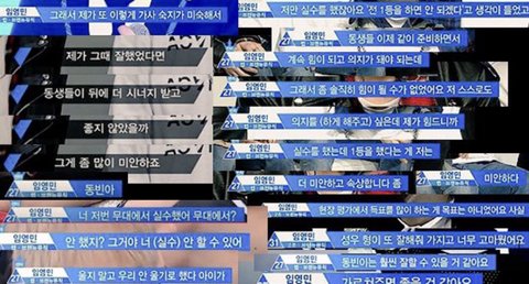 이때까지 많은 루머가 있었고 아니라고 밝혀지기까지의 사람들의 오해와 비방으로 위축되어있던 임영민연습생을 보고 이 글을 써야겠다고 생각이 들었습니다 . 마지막 생방을 바라보고있는 저희지만 만일 투표할사람이 없다면 브랜뉴뮤직의 임영민 연습생을 투표해주세요!