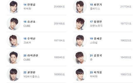 엠넷 싸이트 얘네들 득표수 보면 이렇게 되어 있던데..
