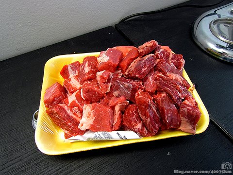 가장 먼저 고기를 준비합니다.