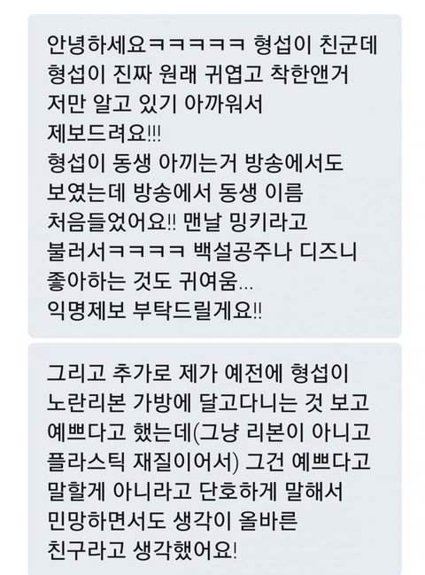 그동안 떴던 지인 일화에서 한결같이 4차원적인 면모와 고운 심성을 인증받아왔던 위에화 안형섭! 녤 형이 고기도 사줬대ㅠㅠㅠㅠㅠ둘이 겟 어글리를 통해 많이 친해졌나봐