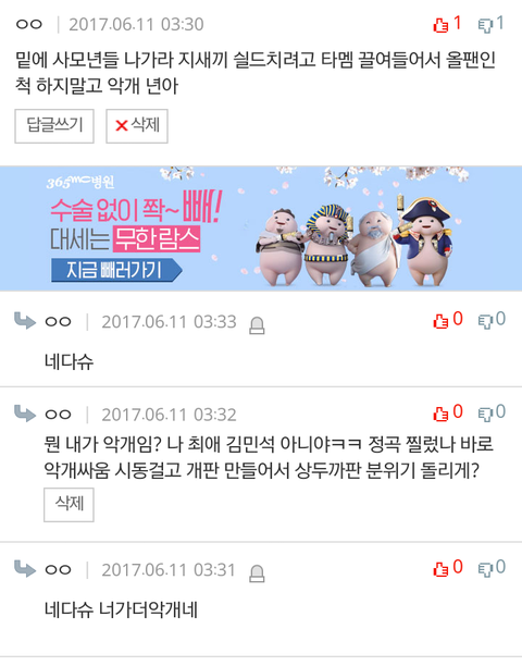 어그로 끌릴 단어들 택하면서 까지도 자기 새끼 싈드치려고 애쓴다 진짜 ㅅㅂㅋㅋㅋㅋ 지새끼 쳐맞기 싫으니깐 어그로끄냐 ㄹㅇ