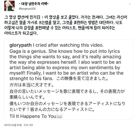 이건 인성이라고 할 수도 있고 본인의 우상과 자신이 따라 하고 싶은