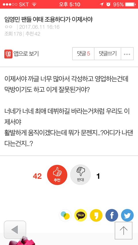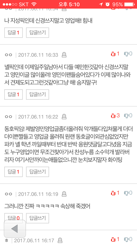 영민이 까글이 올라와서 이렇게 누가 썼는데