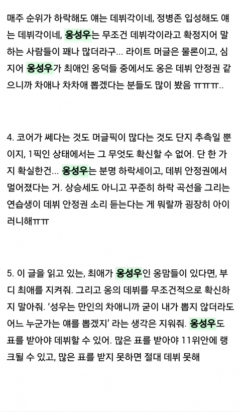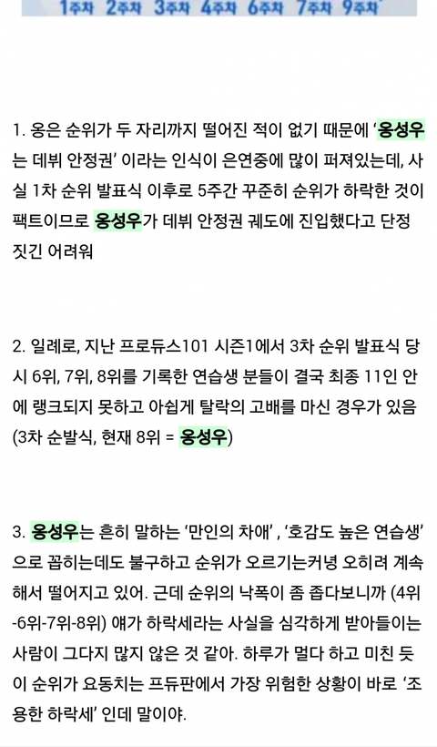유난히 옹성우는 안정권이니까 다른 애 뽑겠다는 말을 여기저기서 봤는데
