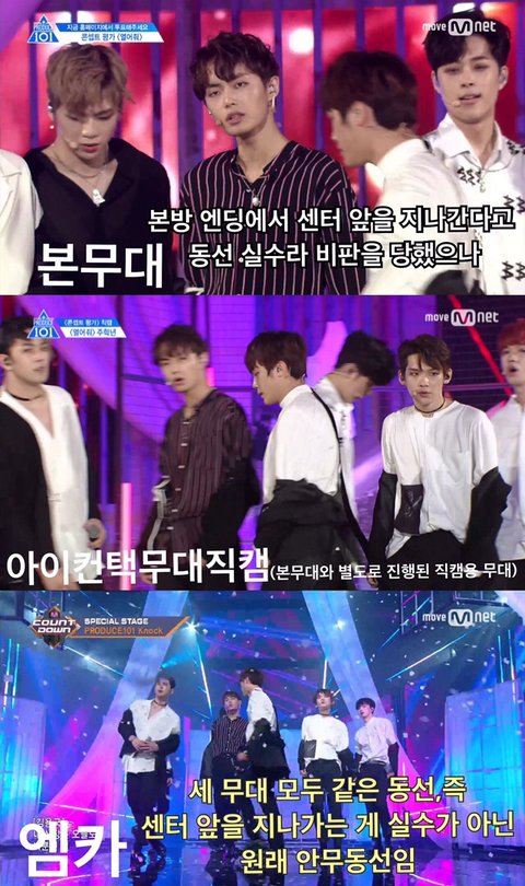 본방 엔딩에서 센터 앞을 지나가는 동선실수를했다고 비판을 당했으나