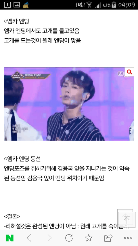 위 짤은 이번 엠카 무대 후긴데요,