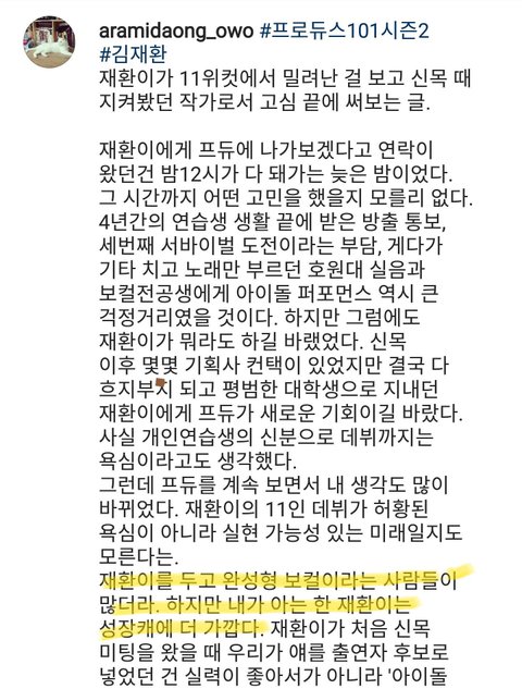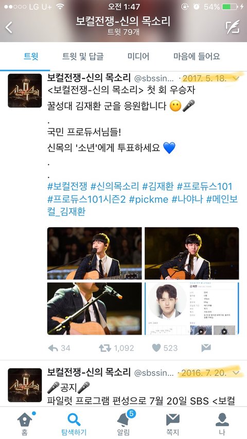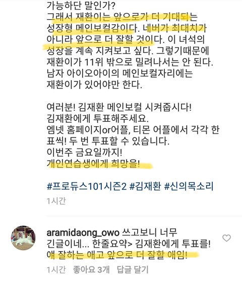 완성형이 아닌 노력형 발전형 보컬 김재환 꼭 투표 부탁할게