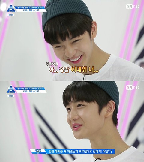 대휘 있는 네버팀 차례되니까 슬금슬금 앞으로나오는 배진영 ㅋㅋ