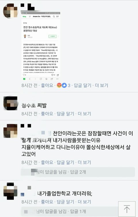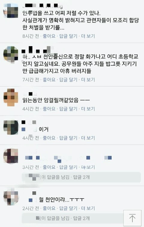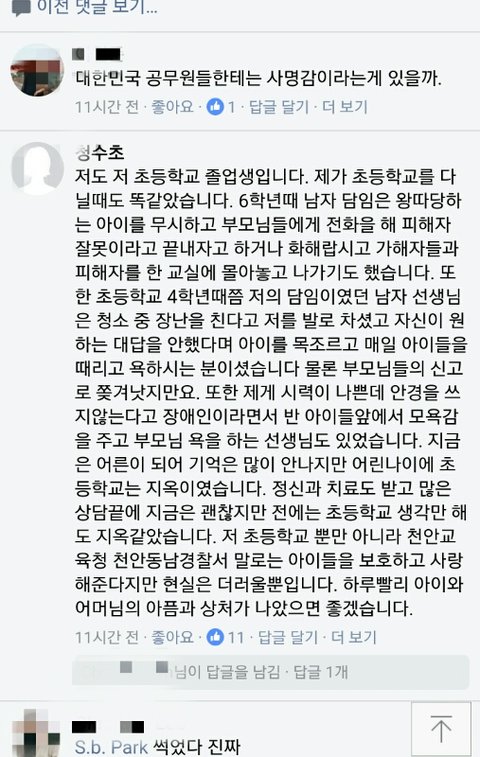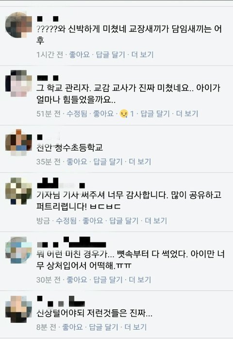 기가 막히고 자기들 감싸기는 뉴스에 나오는 집단과 하나 다를게 없음에 더욱 화가 납니다. 좋으신 선생님들도 많은데 이런 부류들 때문에 그리고 학교라는 집단과 울타리에 함께 상처 받는다고 생각합니다.