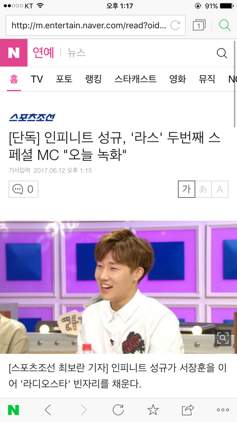 성규 오늘 녹화했나봐 ㅎㅎㅎ