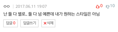 ㅋㅋㅋㅋㅋ제곧내고 누구 얼굴로 살래 물어서 말한건데 반대 10개 달렸네.. 그냥 무시하고 가는것도 아니고 내 취향이 둘 다 아닐수도 있는거지 자기랑 의견 안 맞다고 우르르 반대나 달고가고 ㅋㅋ..