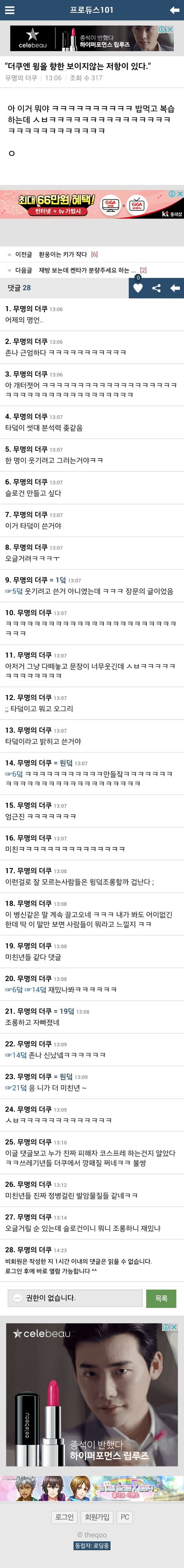 오히려 이 글 프갤에서 개념 올라가니까 더쿠에서 몰려와서 분탕질 치는 걸 내 눈으로 봤다