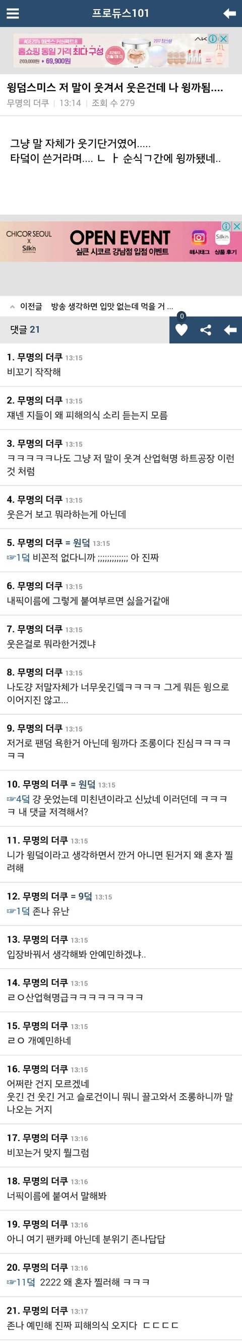나 윙덤스미스 글에 웃었는데 나 윙까된거야?ㅠㅠ 이러면서 지들끼리 ㅠㅠ 이런댓글씀ㅋㅋㅋㅋ