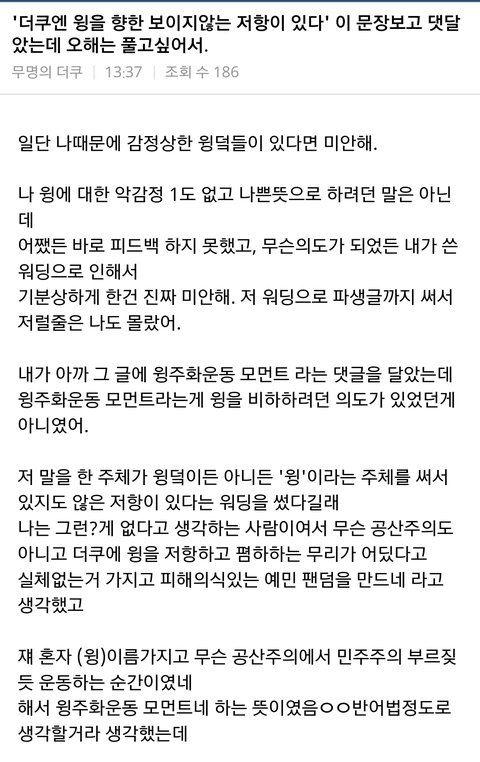 윙주화운동 글쓴이가 장난이었어 미안^^ 이딴 사과문 쳐올림
