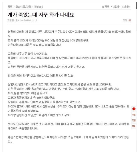 저번부터 계속 그까짓 개 가지고 그러냐 잡아먹니 마니 하는 사람들 있던데