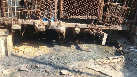 뜬장들 밑은 그야말로 배설물, 오물로 인해 썩을 대로 썩어서.. 땅이 아니 늪으로 보일 지경이었습니다.