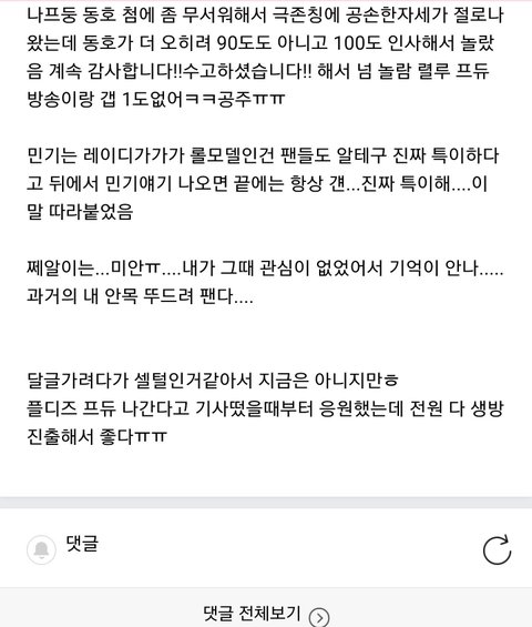 애들이 워낙 친하고 돈독해서 자기들끼리 드립치고 디스 날리고 편하게 놀때가 난 제일 보기 좋은데, 이제 플디즈 애들이 함께 있는 모습도 몇일이 지나면 볼 수 없다는게 너무 마음이 아프다.