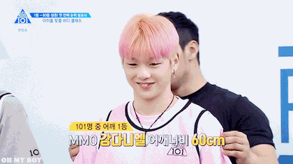 처음에 프듀 시작하면서 핑크머리 걔로 통하기 시작해서 국프들의 관심을 끌게 됨 어깨재는데 핑크머리 걔가 거의 60cm..어깨 세개면 자기 키 나온다는 강다니엘
