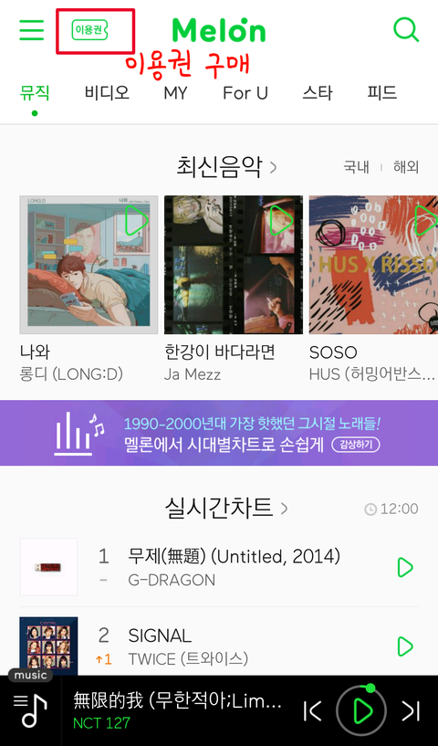 우선 이용권 구매하는데 뭘 구매할지 자유긴하지만 스트리밍만 되는거 사서 다운은 개별곡으로 하는게 점수반영에 높아!
