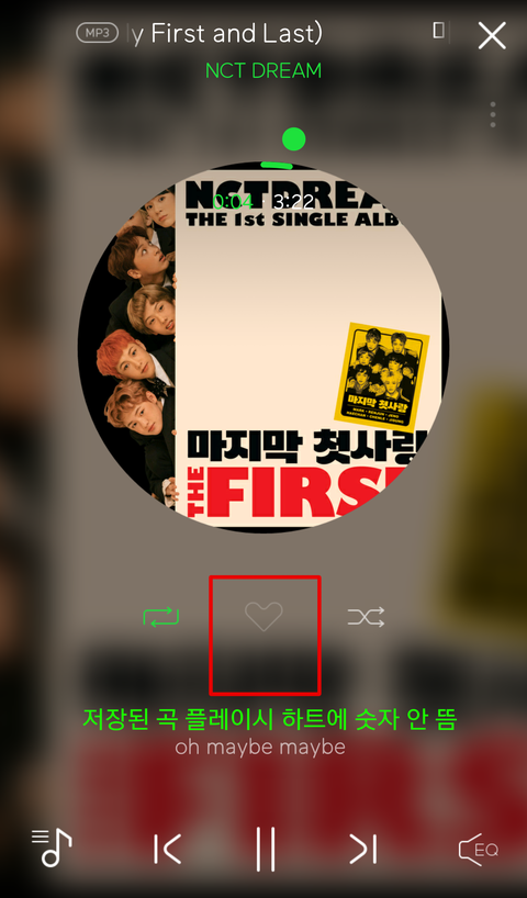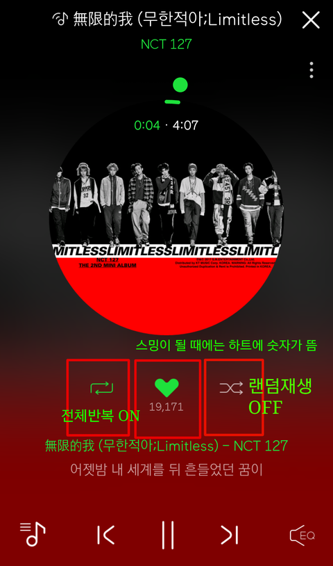 그 예가 밑에 사진!! 밑에는 다운된 곡으로 스밍할 때는 하트 밑에 숫자가 없어