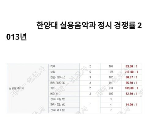 심지어 수시로는 400:1을 웃돔... 2013년 자료를 못 찾았는데 하1냥대 실음과 수시는 그 정도 하는 것 같아