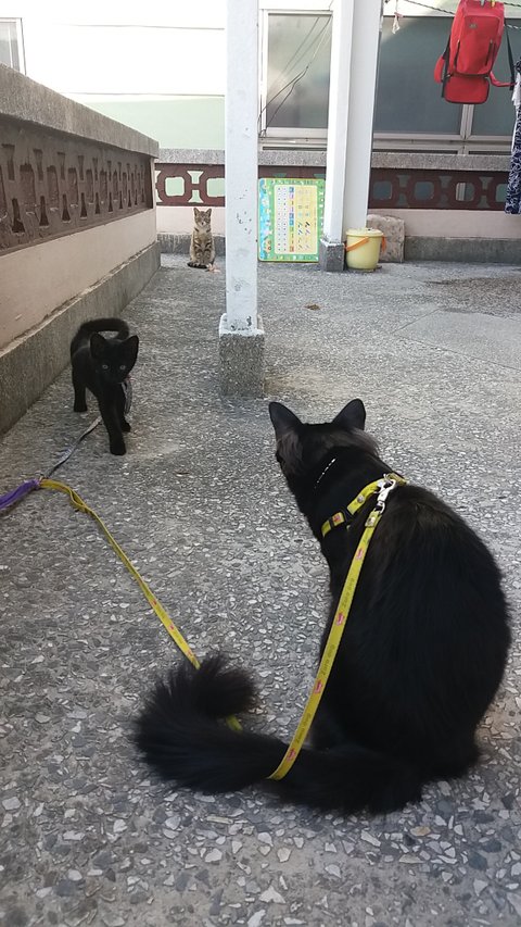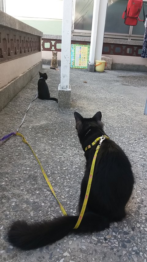 고양이 키우는 사람입니다! 냥이가 너무 귀여워요~~목을 메는 줄은 위험해요 난간에 올라갔다 발을 헛디뎌서 떨어지면 목이 졸려요 가슴줄로 바꾸시면 더 안전하겠네요^^