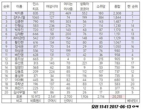 커뮤니티별연습생원픽순위래