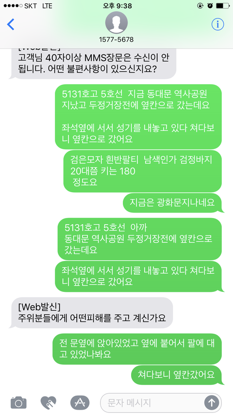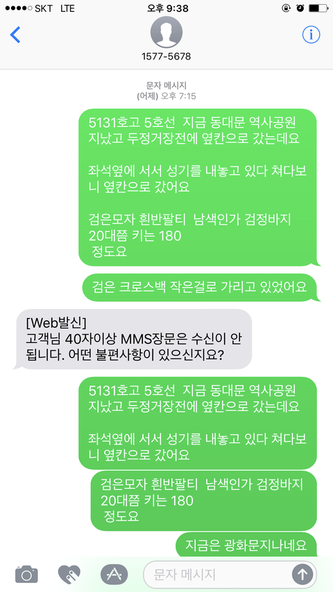 문자로 인상착의등 신고하니 두정거장 정도 지났어요