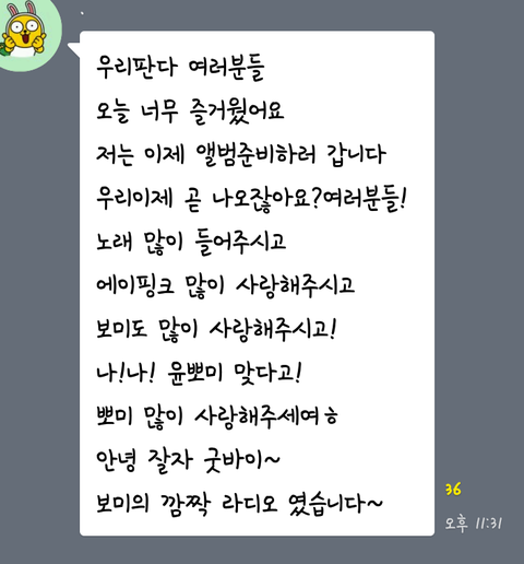 윤보미가 갑자기 공카에 판다사랑해요라고 올림