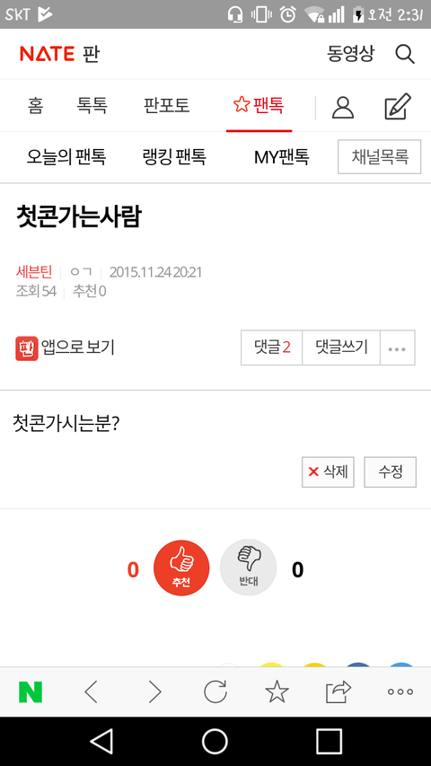 ㅅㄷ 다들 팬톡에 처음 올린 글 뭐야??