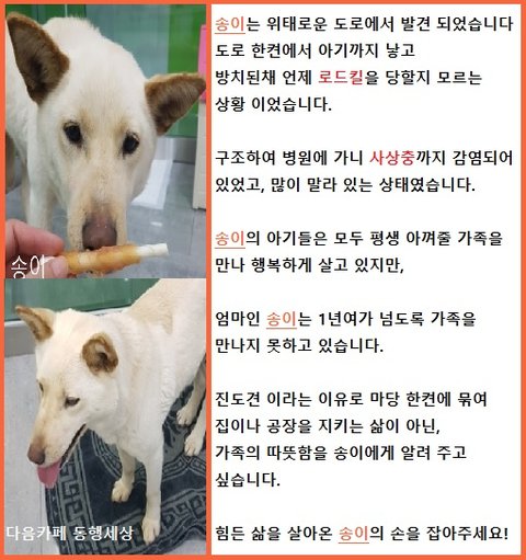 크고나면 개장수에게 식용견으로 팔려갈 운명 이었습니다.