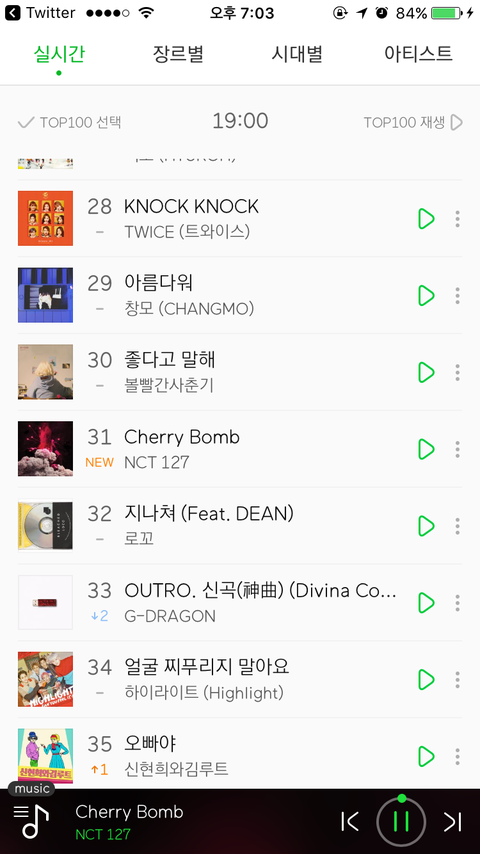 7시기준 멜/론 31위